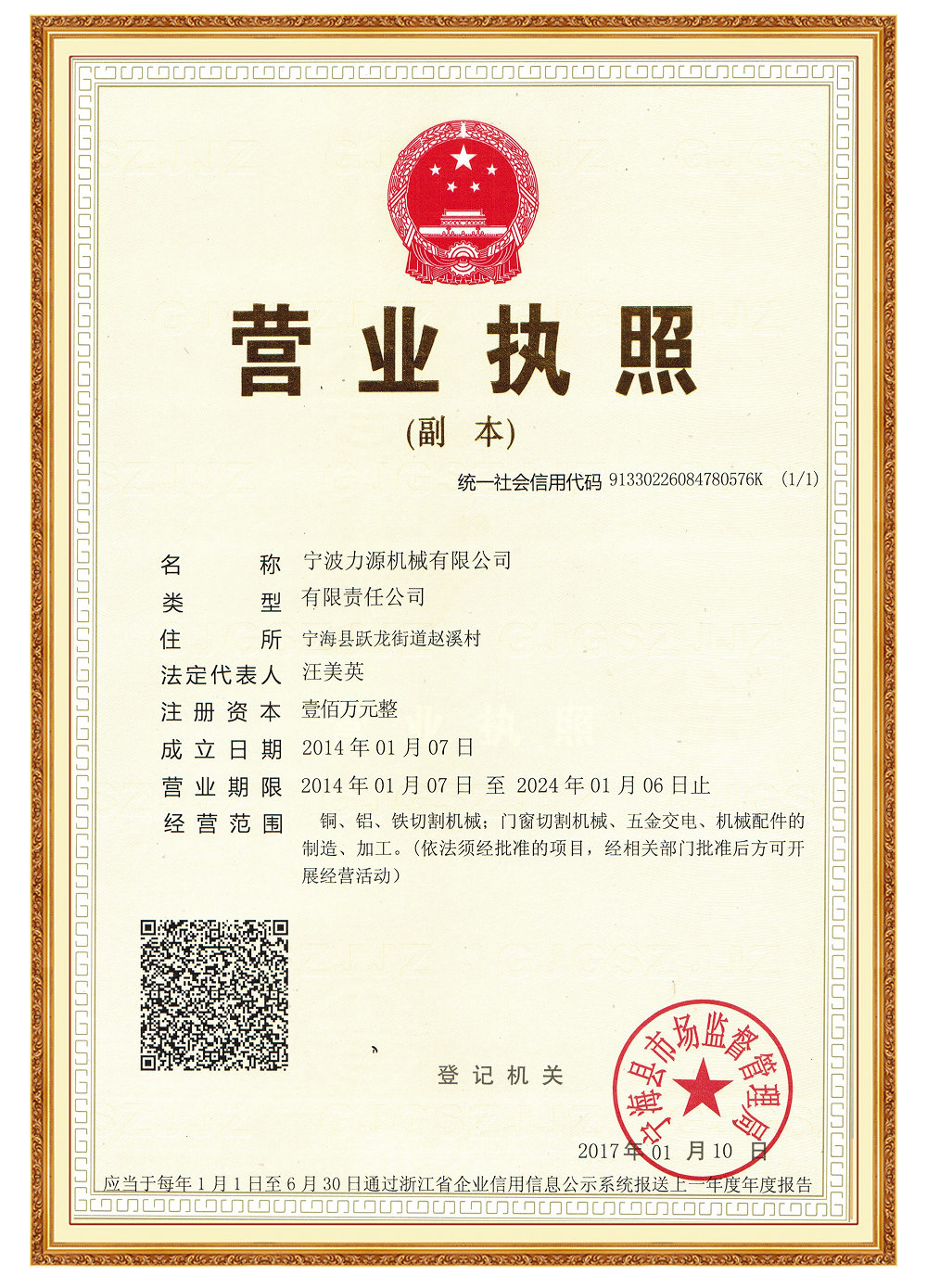 • 公司于2014年01月07日成立(原寧海縣力鑫機械廠),公司主要產品有半自動銅鋁材切割集,全自動銅鋁材切割機,高端數控銅鋁材切割機,集研發,生產,銷售一體的制造型企業