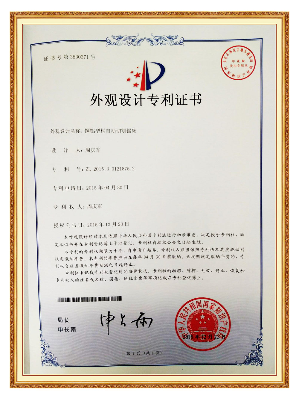 • 公司多款設備擁有專利及實用新型專利證書,實用性有可觀的提高,新型產品解決了企業使用老式切割機鋸切材料效率低,安全性差,精度不達標等問題,有效為客戶提高了產能并節省了人工成本,取得了客戶一定程度的認可